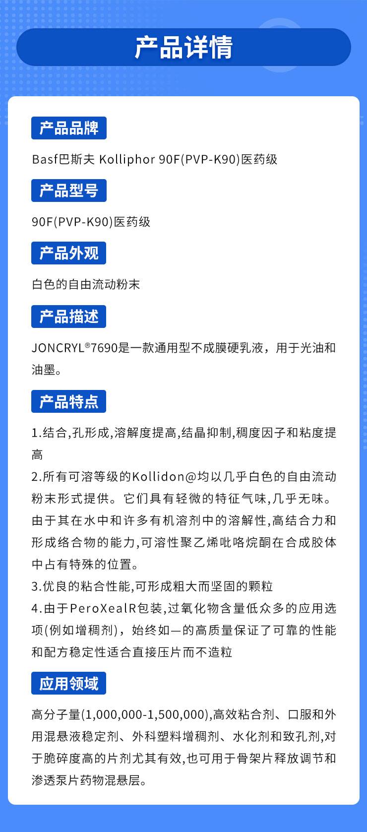 Basf巴斯夫 Kollidon 90F(PVP-K90)医药级